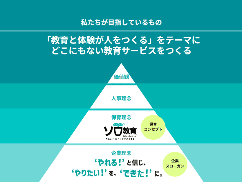 「ソロ教育:‘やれる!’と信じ、‘やりたい!’を‘できた!’に。」をコンセプトに、自立心や非認知能力を育てることにも力を入れています。また、子どもたちの得意・不得意の両側面に目を向け自立の力に変える「発達凸凹サポート」にも取り組み、子ども達一人一人の成長に寄り添った保育を行なっています。