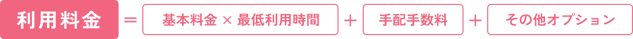 ※各地域の詳細な「最低利用時間」「基本料金」「手配手数料」については、